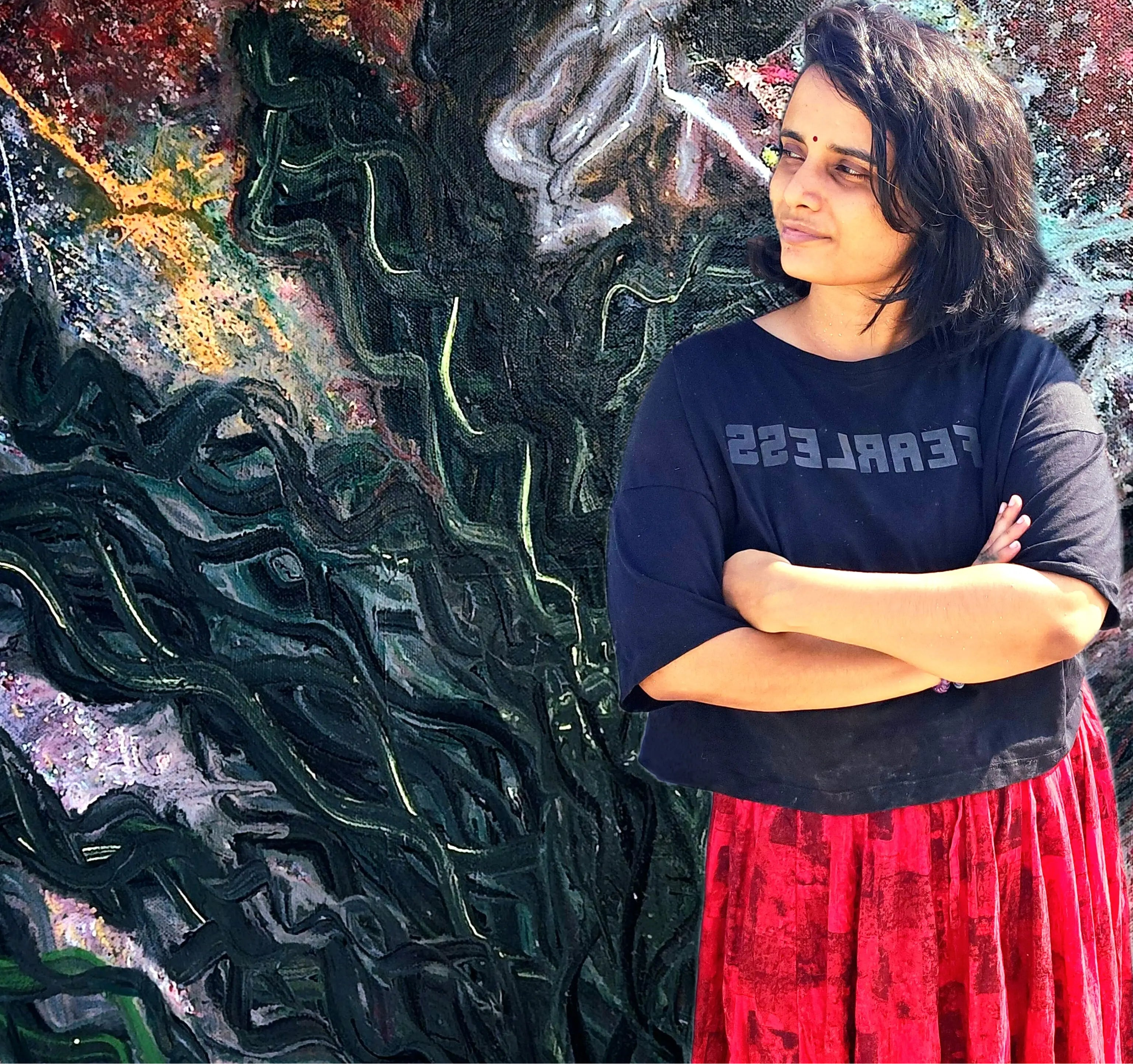 Hansa Sethi is an Indian contemporary artist exploring emotion through abstraction and instinctive mark-making.