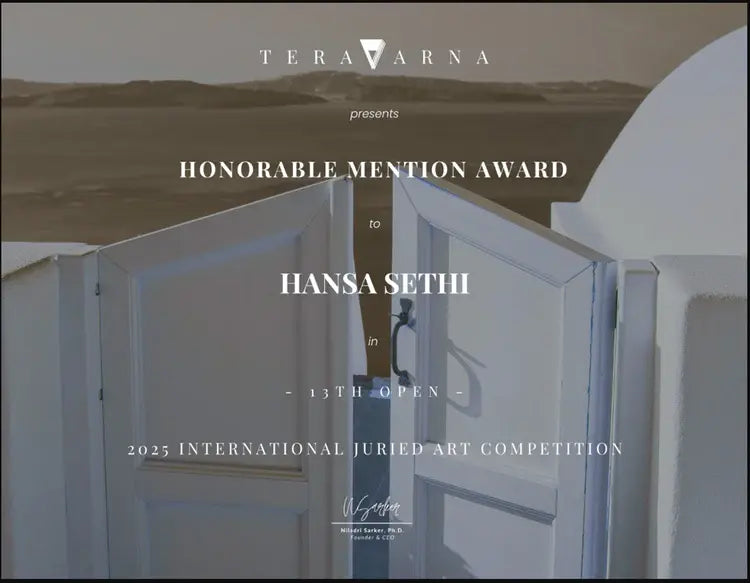 Hansa Sethi is an Indian contemporary artist exploring emotion through abstraction and instinctive mark-making.
