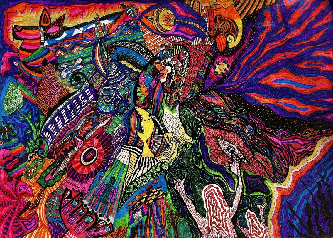 A lifelong inquiry into life, meaning, and human psychology—articulated through a psychological and philosophical visual language. Mind’s Storm 2025 · 11 × 16 inches · Fineliner on paper