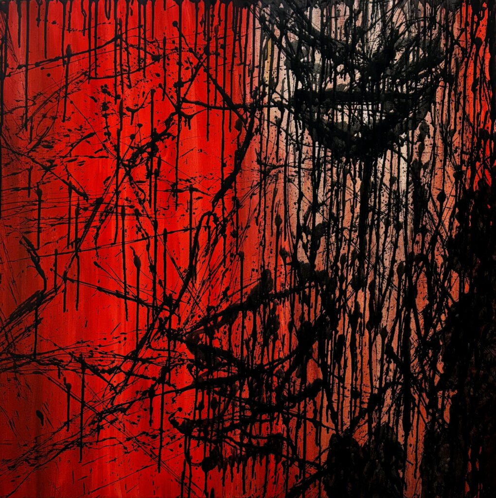 Shadow 2026 · 36 × 36 × 1.5 inches · Acrylic on Canvas The world darkens, and the shadow smiles back—marking the moment awareness and survival are chosen over disappearance.