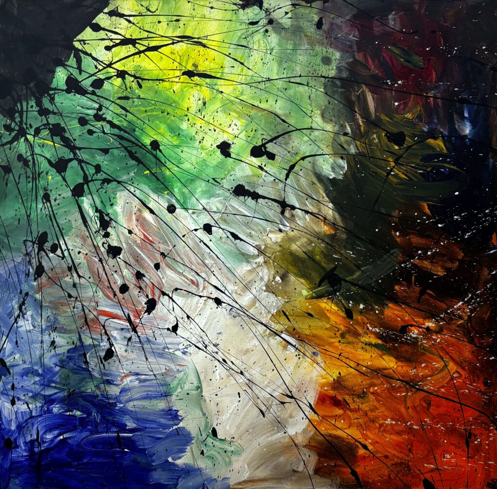 Shadows 2026 · 36 × 36 × 1.5 inches · Acrylic on Canvas Shadows: In light and dark alike, shadows persist—within and outside.